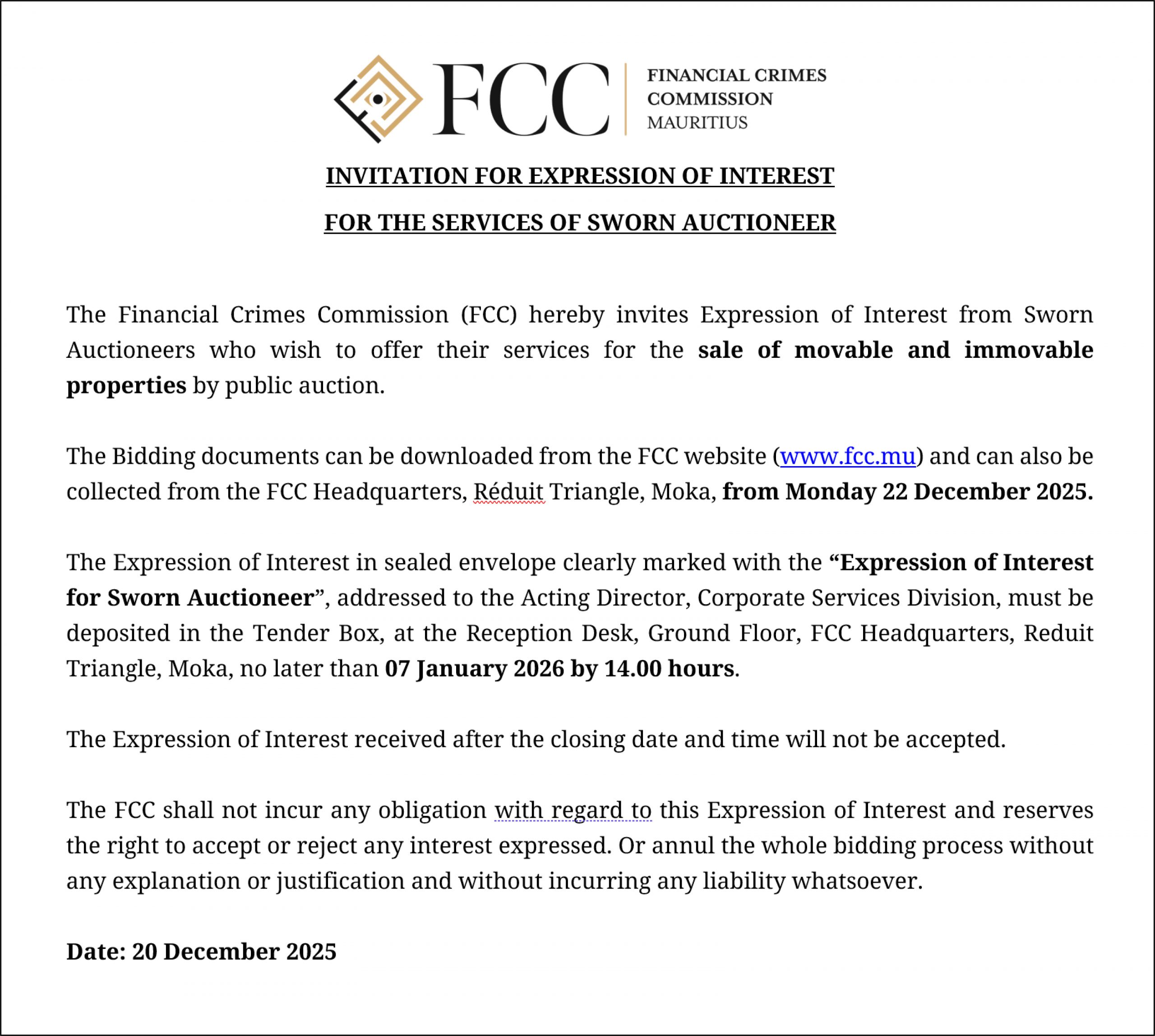 The Financial Crimes Commission assures that all data and information provided is handled with utmost confidentiality.