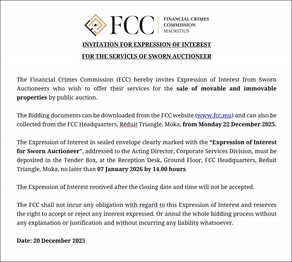 Expression of Interest for the Services of Sworn Auctioneer