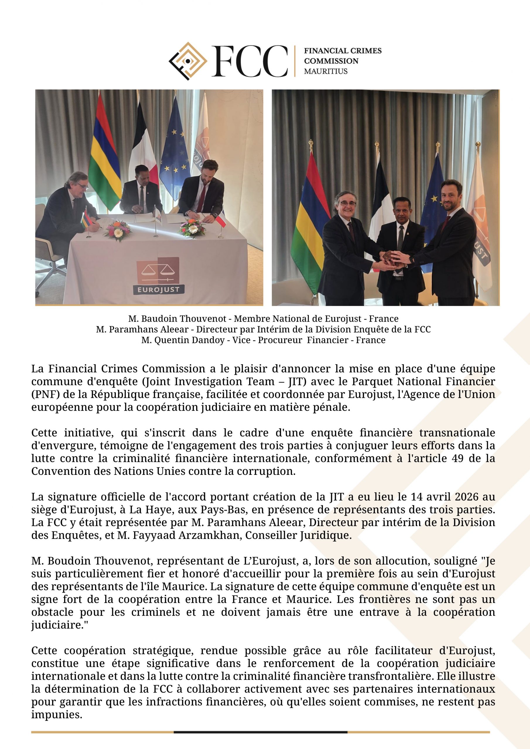 La FCC renforce la lutte contre la criminalité financière avec une JIT internationale